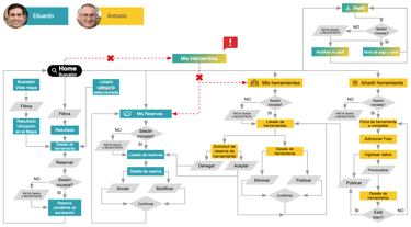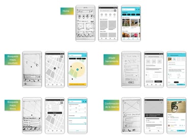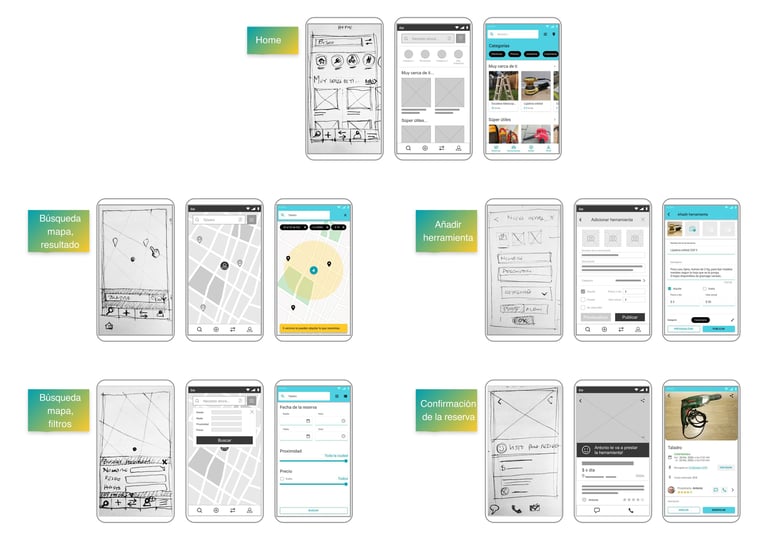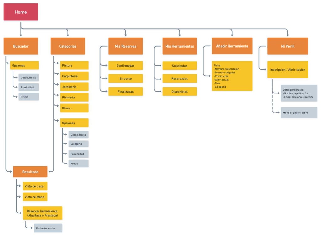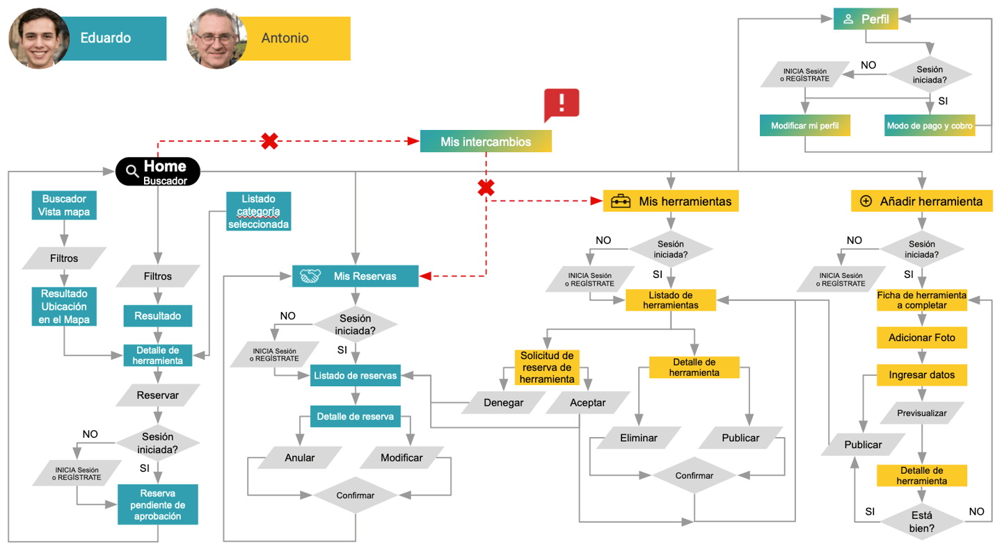 In the initial version, I grouped My Bookings (Mis reservas) and My Tools (Mis herramientas) under a single section called My Booked & Shared (Mis intercambios).